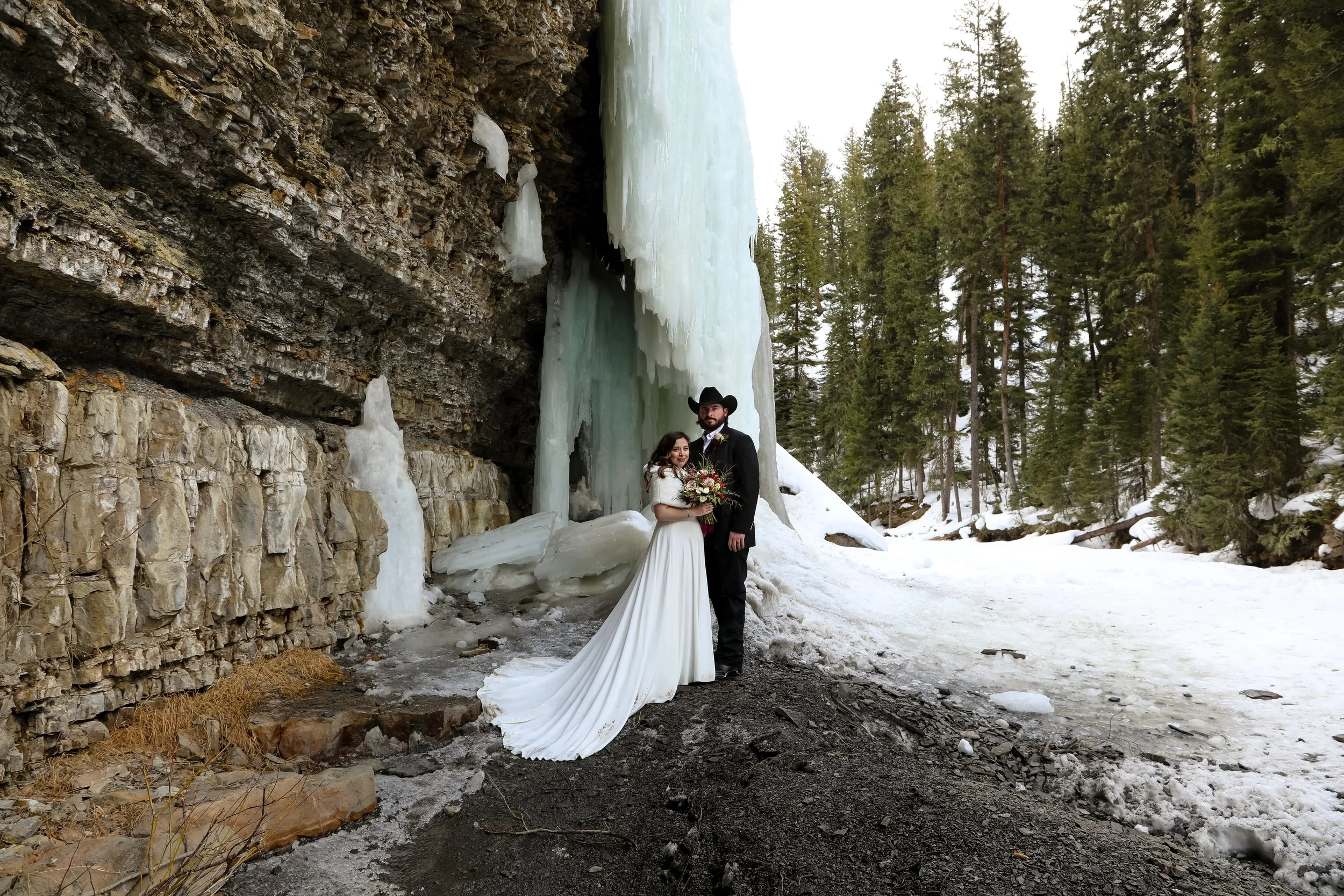 Emily and Dan eloped on March 16, 2021 in beautiful Big Sky, Montana. They had a wonderfully intimate ceremony at Lone Mountain Ranch and we spent the next few hours exploring the surrounding snowy mountain views and frozen waterfalls. The hike to the falls were by far the iciest hike I have ever taken a couple on and they were absolute rockstars! They donned their cowboy boots and handled it like seasoned pros!